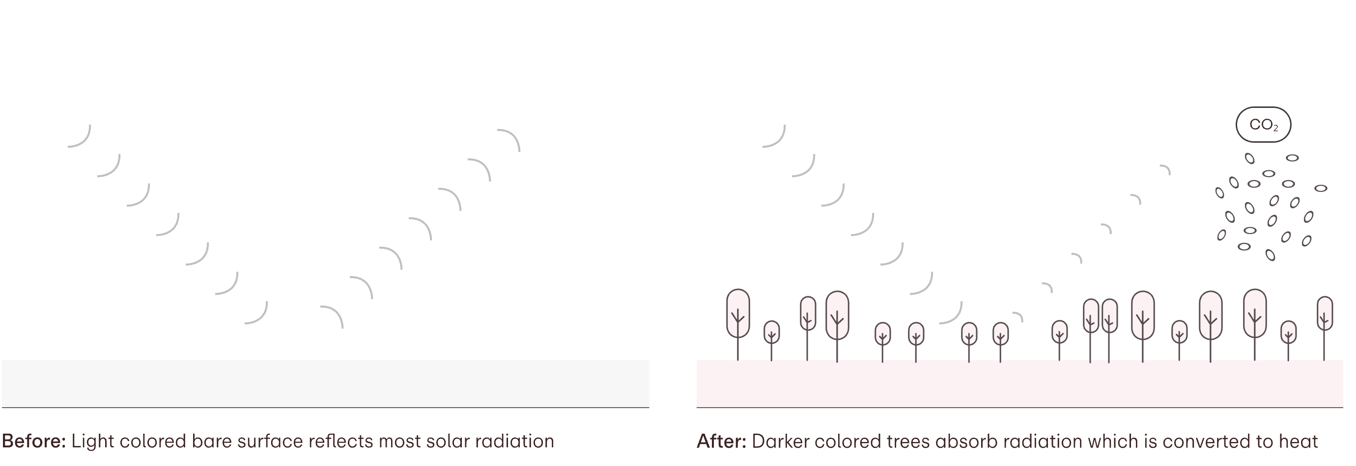 When planting trees makes the land surface darker it means more solar energy will be absorbed, creating a warming effect. Depending on how much carbon the forest removes, this warming effect from the albedo change can outweigh some or even all of the climate benefit of the carbon removal from the project.